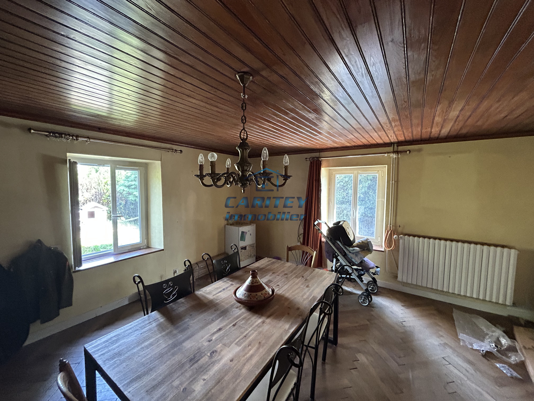 Julien votre conseiller CARITEY Immobilier, a le plaisir de vous présenter à la vente un ensemble immobilier situé à Faymont, sur une parcelle de 43 ares 66. Cet ensemble se compose de deux maisons : Première maison (200 m² avec piscine chauffée) : - Rez-de-chaussée : Entrée, cuisine, salle à manger, salon insert bois, salle de bains, WC et buanderie. - Premier étage : Deux chambres, bibliothèque, mezzanine et WC. - Deuxième étage : Quatre chambres. - Annexes et technique : Grande grange, DPE classé C, chaudière bois, double vitrage et tout-à-l'égout. Seconde maison (109 m²) : - Rez-de-chaussée : Entrée, cuisine avec fourneau à bois, salle à manger, salon, salle de bains et WC. - Premier étage : Deux chambres. - Deuxième étage : Grenier. - Technique : DPE classé F, chaudière mixte bois/fuel, double vitrage et tout-à-l'égout. La taxe foncière annuelle pour l'ensemble s'élève à 1 000 euros. Je reste à votre entière disposition pour toute information complémentaire ou pour organiser une visite.