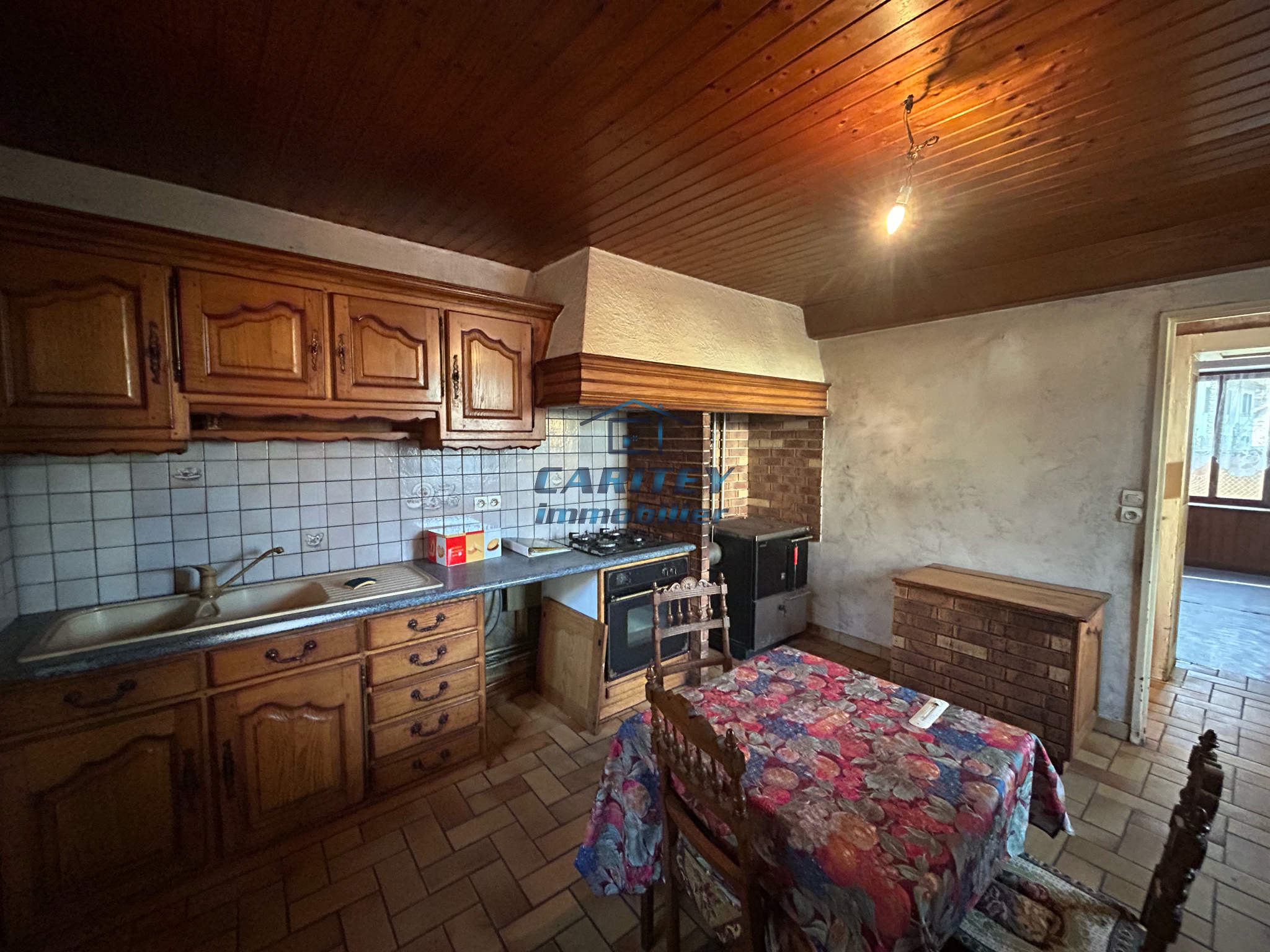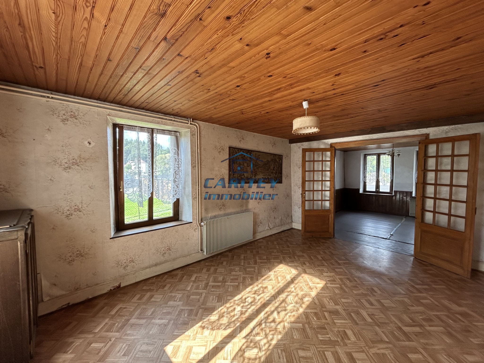 Julien, votre conseiller CARITEY immobilier, est heureux de vous présenter cette maison de 166m² sur son terrain de 4 ares 69 Elle se compose au RDC : entrée, cuisine équipée, salle à manger, salon, une chambre, salle d'eau, WC. L'étage dessert 5 chambres et un débarras. Grenier complet à aménager, chauffage central bois récent, cave,fenêtre bois double vitrage, assainissement tout à l'égout. Vos conseillers sont à votre disposition.