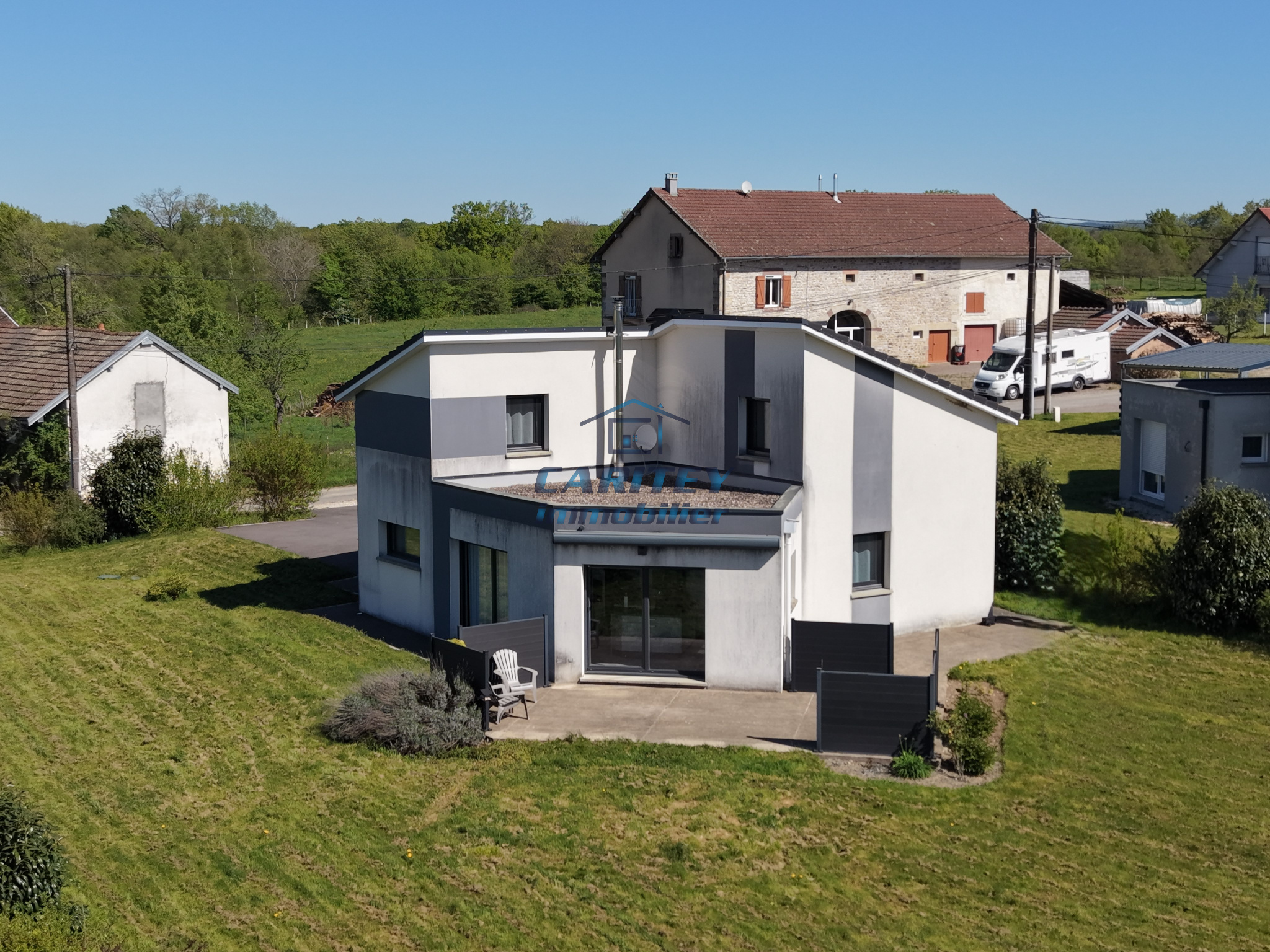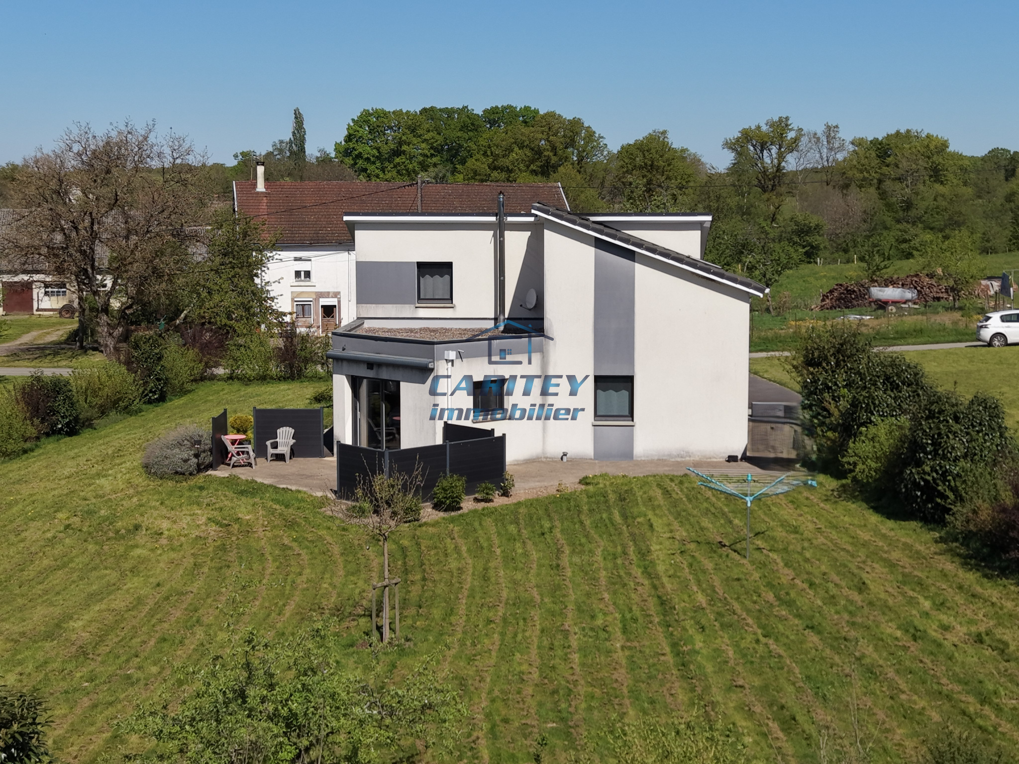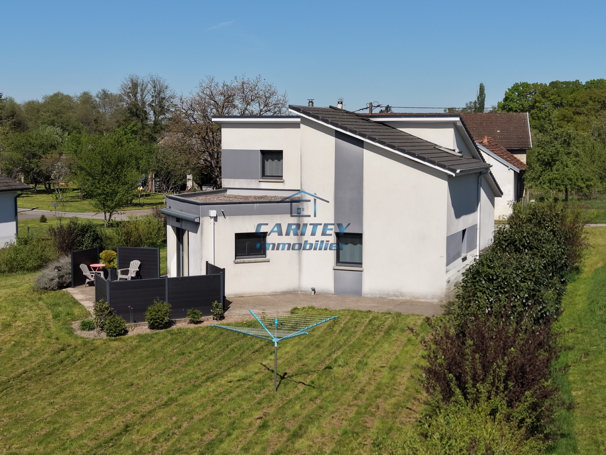 Uniquement dans votre agence CARITEY IMMOBILIER Célia CLEMENT, conseillère chez CARITEY Immobilier vous propose à la vente à FRANCHEVELLE, cette maison moderne partiellement de plain-pied, sur un terrain arboré de 18 ares. Cette maison de 121 m², construite en 2016 comprend au rez- de-chaussée : hall d'entrée, cuisine ouverte sur salon/séjour avec accès terrasse, 1 chambre, 1 suite parentale avec salle de bain et dressing, WC séparés. Accès garage et grenier. A l'étage : 2 chambres, salle d'eau/WC. Chauffage électrique + poêle à granulés. Cette propriété est raccordée au tout à l'égout. DPE en C. Taxe foncière : 962 €. Si vous recherchez une maison dans l'air du temps, sans travaux, avec la possibilité de vivre de plain-pied grâce à une chambre au rez-de-chaussée, cette maison est faite pour vous ! Contactez Célia sans plus attendre !