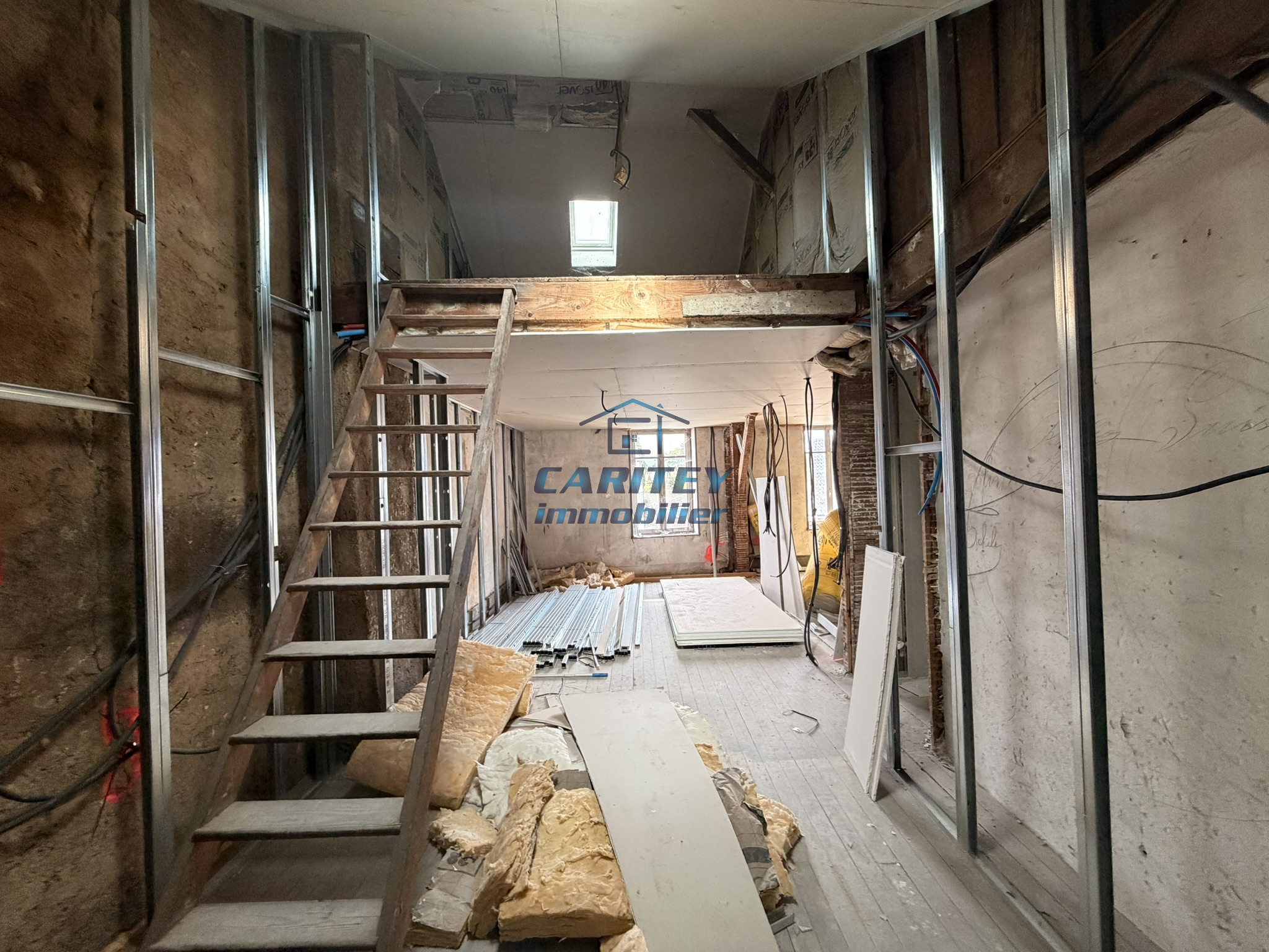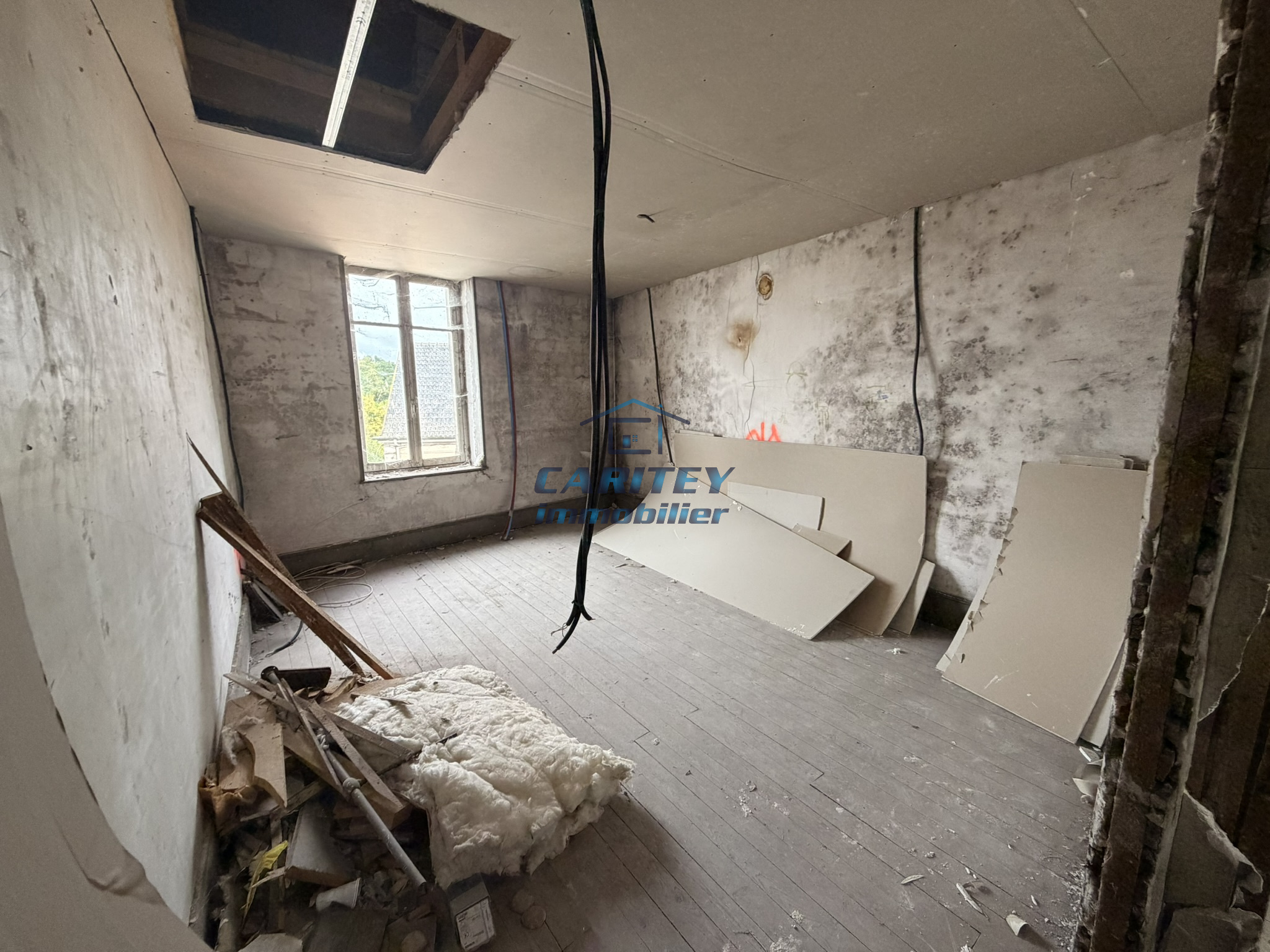 • À l’étage : un appartement de 85 m² à terminer de rénover composé d'un espace cuisine ouvert sur séjour - 3 chambres - 1 salle d'eau - 1 WC (DPE C).