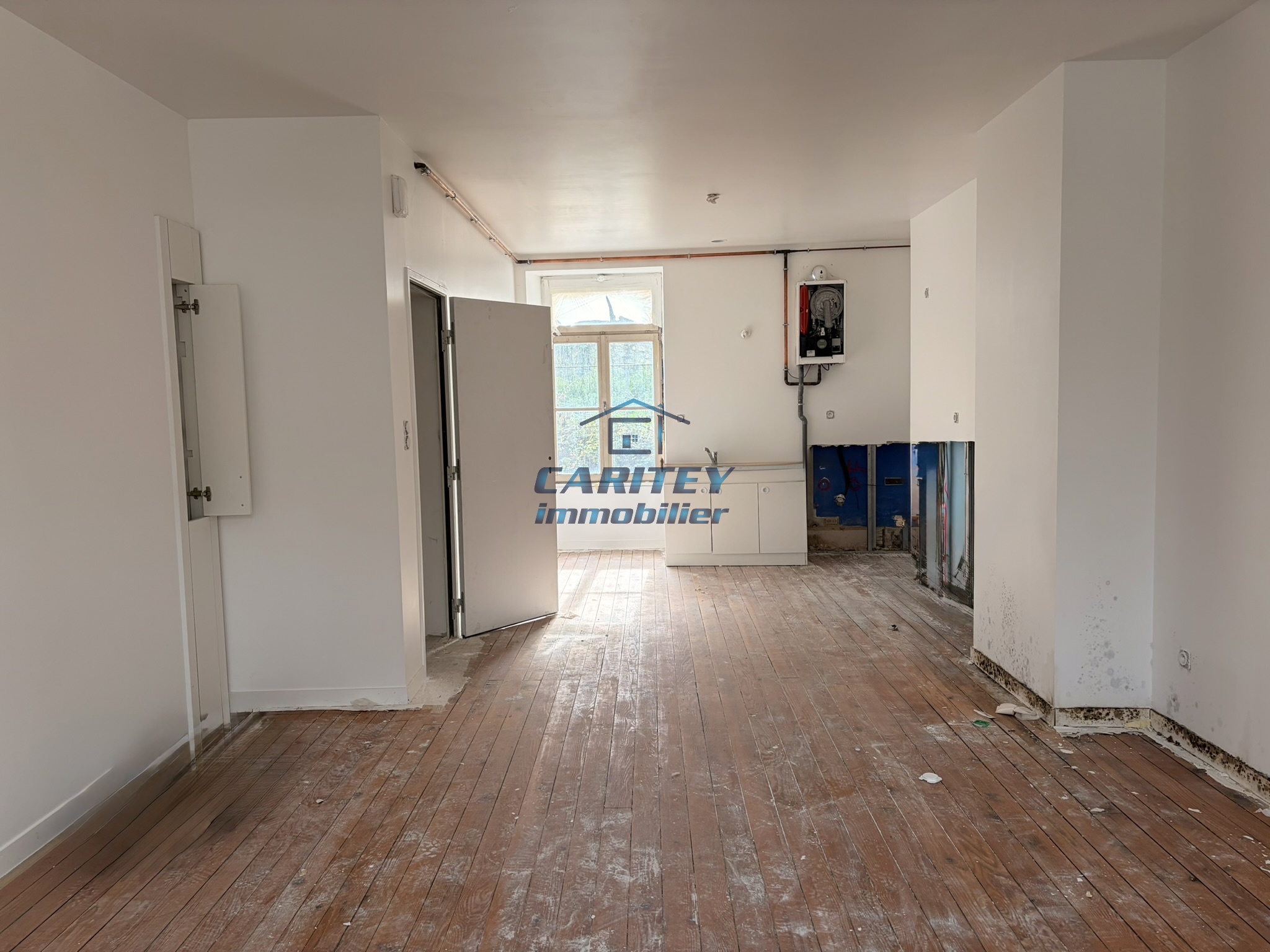 • Au 2ème étage : un appartement de 83 m² à terminer de rénover composé d'un espace cuisine ouvert sur séjour - 3 chambres - 1 salle d'eau - 1 WC (DPE D).